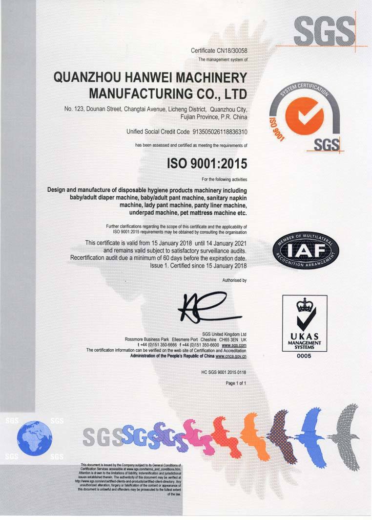 泉州市漢威機械制造有限公司是一家集生產、研發(fā)、銷售、服務為一體的高科技企業(yè)。一直秉承盡善盡美的思想,未來,泉州市漢威機械制造有限公司將在現(xiàn)有的基礎上,努力使“漢威制造”始終處于國際技術的水平,打造“百年漢威”。為實現(xiàn)這一目標,漢威公司務實創(chuàng)新,近日公司引進ISO9001:2015質量管理體系,通過對全體員工的宣傳、培訓,建立了一套符合國際標準要求的質量管理體系,并嚴格按照質量管理體系文件中的規(guī)定執(zhí)行、實施,在執(zhí)行過程中不斷的改進和完善,使公司形成了一個系統(tǒng)、完善的管理體系,提高了全體員工的工作質量和工作效率,進一步保證了產品質量、服務質量和公司的管理質量,為公司持續(xù)發(fā)展,不斷改進和提升奠定了堅實的基礎。審核專員在我司特派專員的陪同下,各個部門的全力配合下,對我司質量管理體系進行了細致嚴謹的審核,肯定了我司質量管理工作。后ISO9001:2015質量管理體系認證順利通過。于2018年1月15日獲得了ISO9001質量管理體系認證證書。