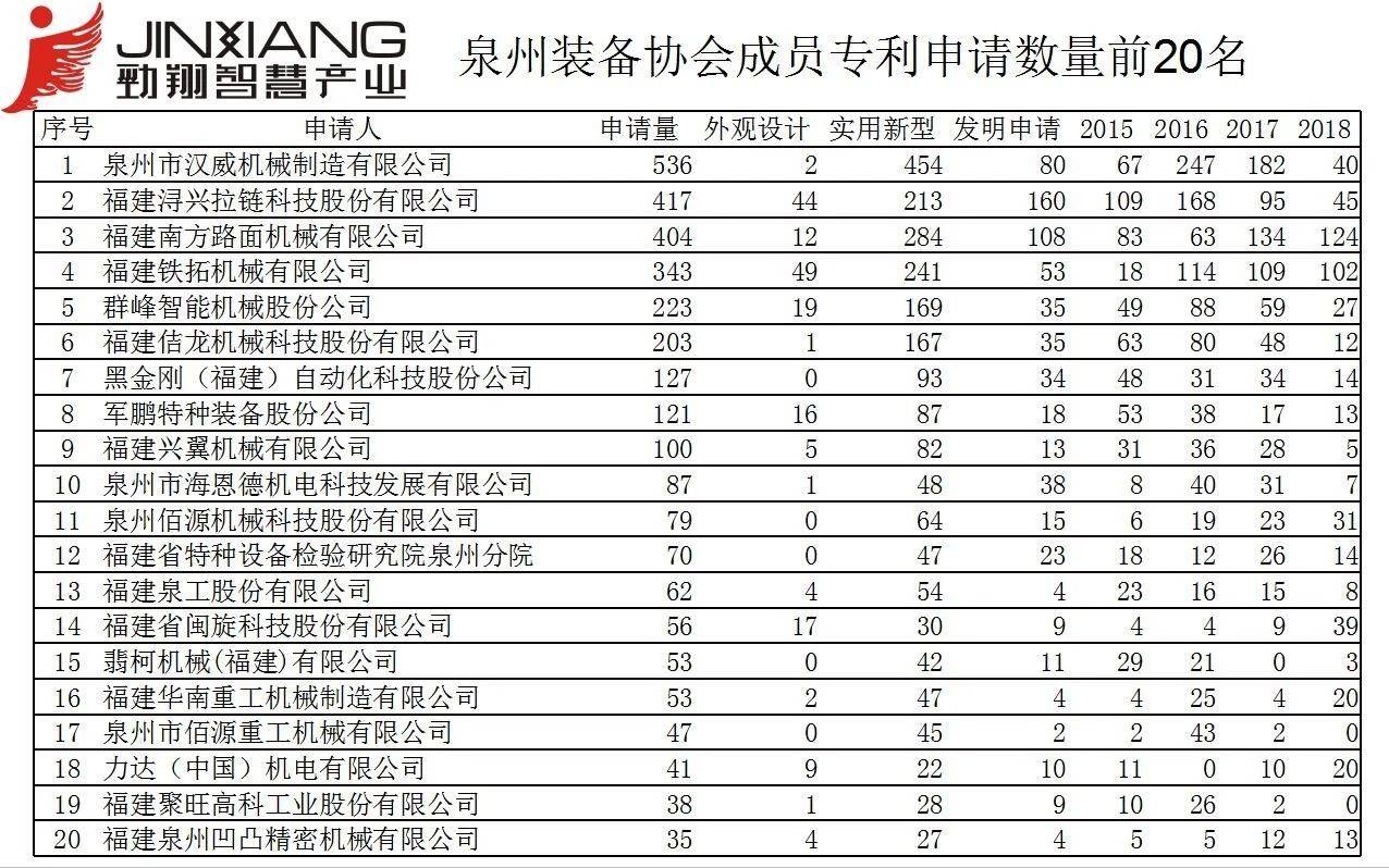 科技創(chuàng)新布局有序高效,泉州裝備協(xié)會主要成員發(fā)明申請量從2015年的164件提高到2017年的202件,增加了23%,且